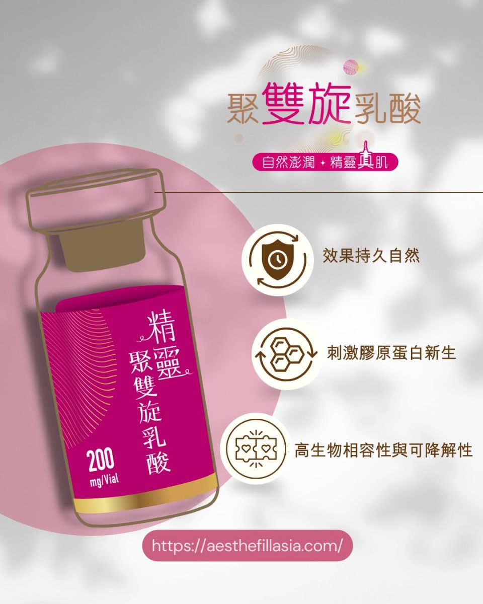 關於精靈聚雙旋乳酸 精靈聚雙旋乳酸是一種新型態的聚『雙旋』乳酸,專利多孔性微球體結構,可誘導促進皮膚第一型膠原蛋白增生,屬於自然再生型填充劑,長效再生最自然柔軟的豐盈肌膚,青春再現,自然回溯年輕。