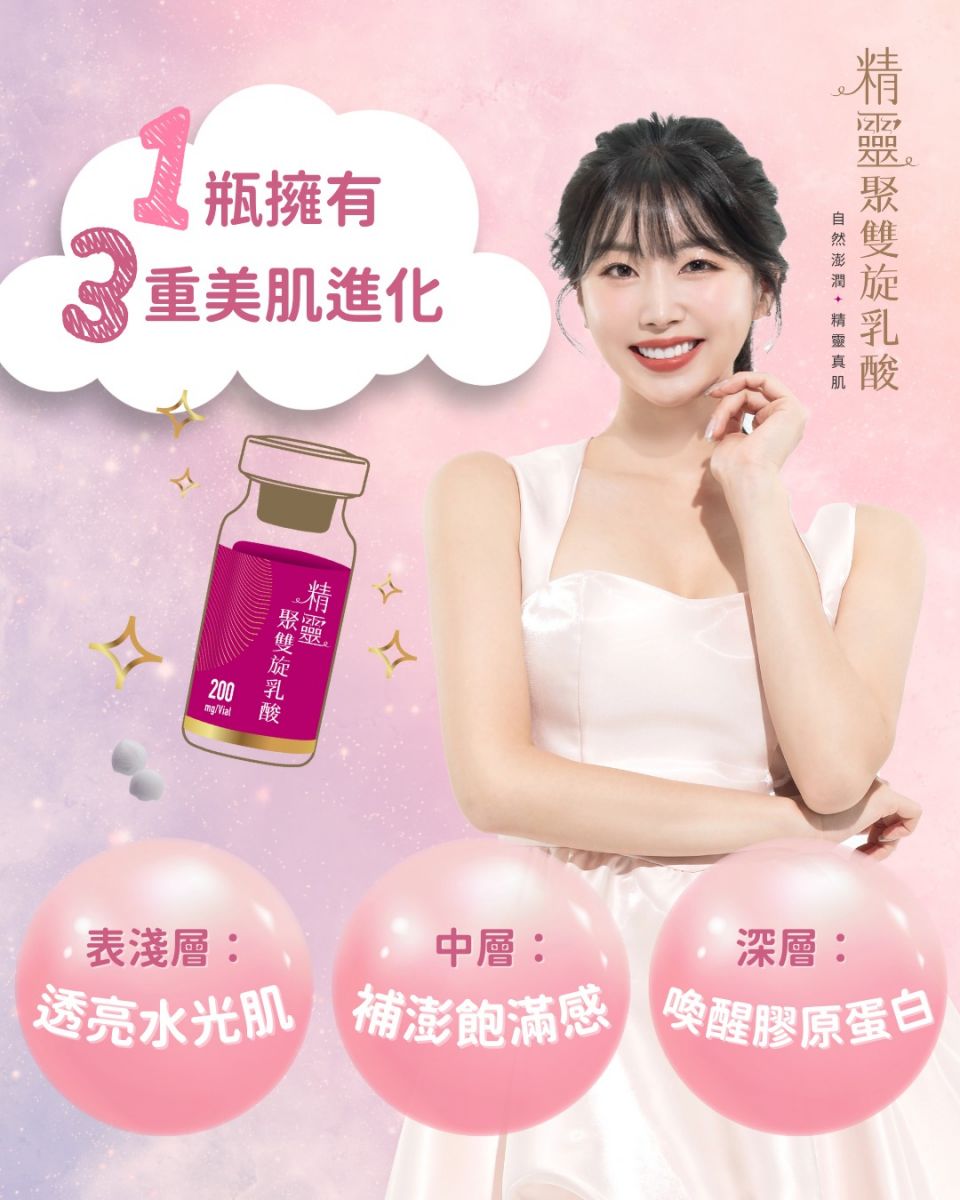 消除細紋,逆轉歲月! 聚雙旋乳酸專為邁入30女性設計,達到自然、飽滿、緊緻三大美肌效果。 適合:醫師推薦給追求自然美肌的愛美女性 專業醫美成分:讓妳輕鬆擁抱青春,重拾自信! 讓膠原再生,展現自然美!