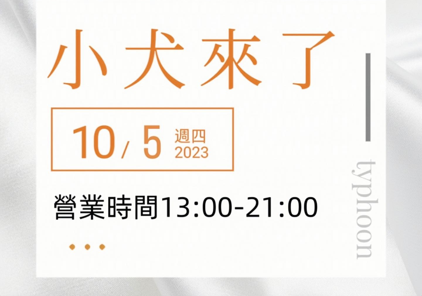 因應小犬颱風來襲 10/5(四)營業時間調整13:00-21:00