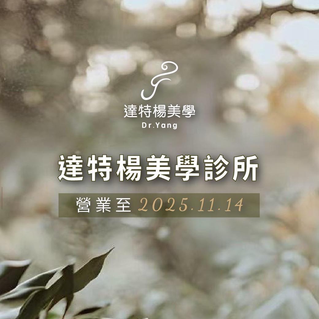 親愛的大家~ 2025年11月14日,將是達特楊美學診所的最後營業日。 不說太多,只先透露一點小秘密—— 敬請期待,我們很快就會再相遇。 感謝每一位曾在達特楊停留過的你。 11/17~11/30 有需要做治療的可以到文山美學診所