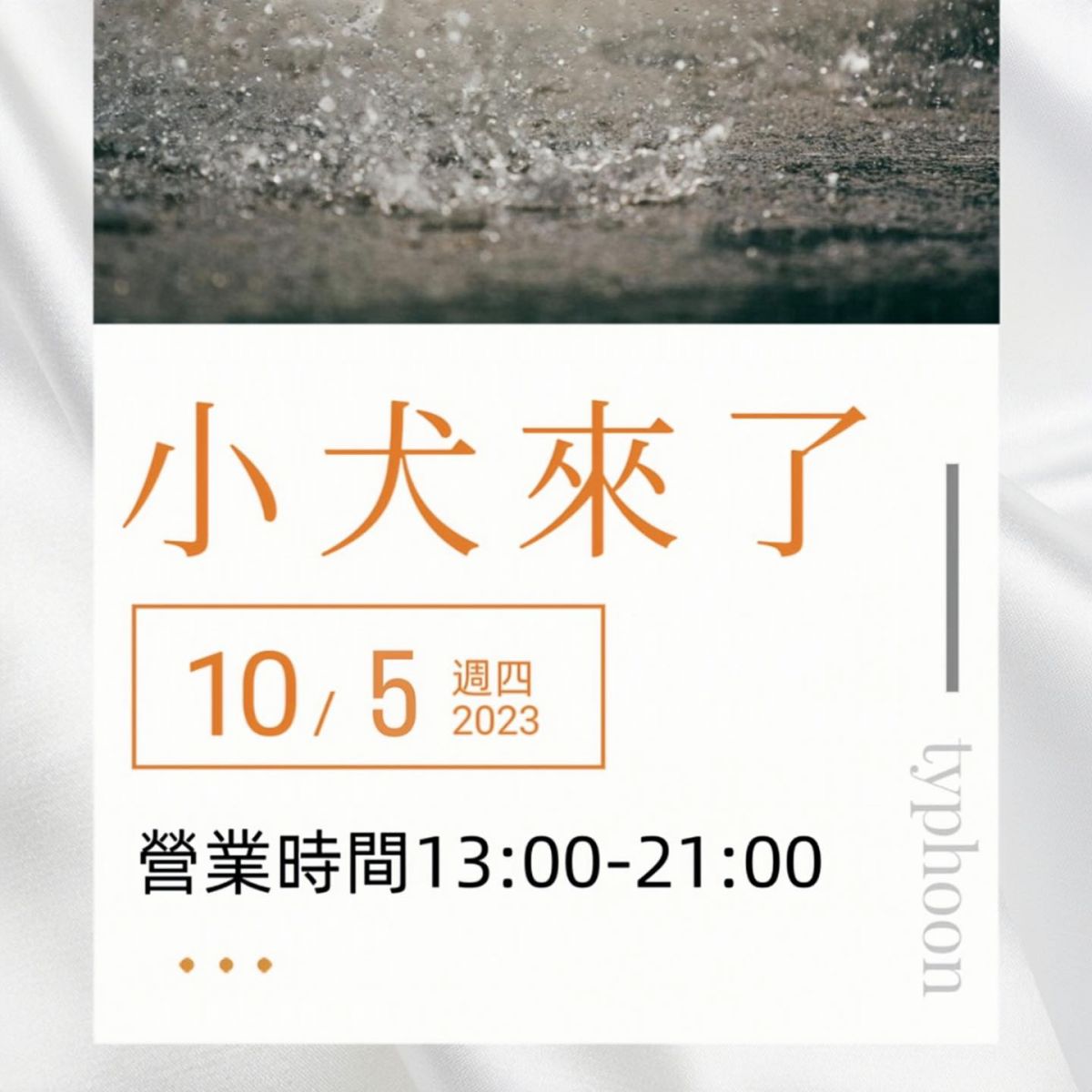 #小犬變獵犬 因應小犬颱風來襲 10/5(四)營業時間調整13:00-21:00。 歡迎線上確認或調整預約唷 線上諮詢 LINE:https://lin.ee/dfkXuYv
