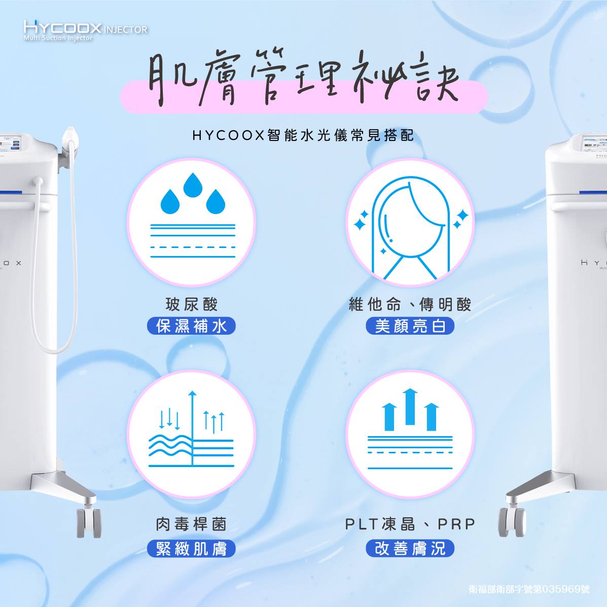 俗稱「水光針」或「水光槍」,通過台灣衛福部認證,配有高科技感知負壓自動注入系統,可依每個人的膚質情況及施打的部位,將藥劑精準的注射進真皮層,同時保濕補水、去除皺紋、收縮毛孔、滋潤角質層,再現肌膚青春。看更多詳細介紹:https://is.gd/BjtiKk